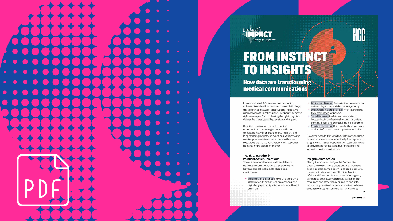 Future Impact is HCG’s thought leadership engine — accelerating the future of medical communications. Designed for pharma and biotech leaders across commercial and marketing, medical affairs, publications, and regulatory, we deliver bold ideas, actionable insights, and innovation that drives impact and shapes the future of medical communications.